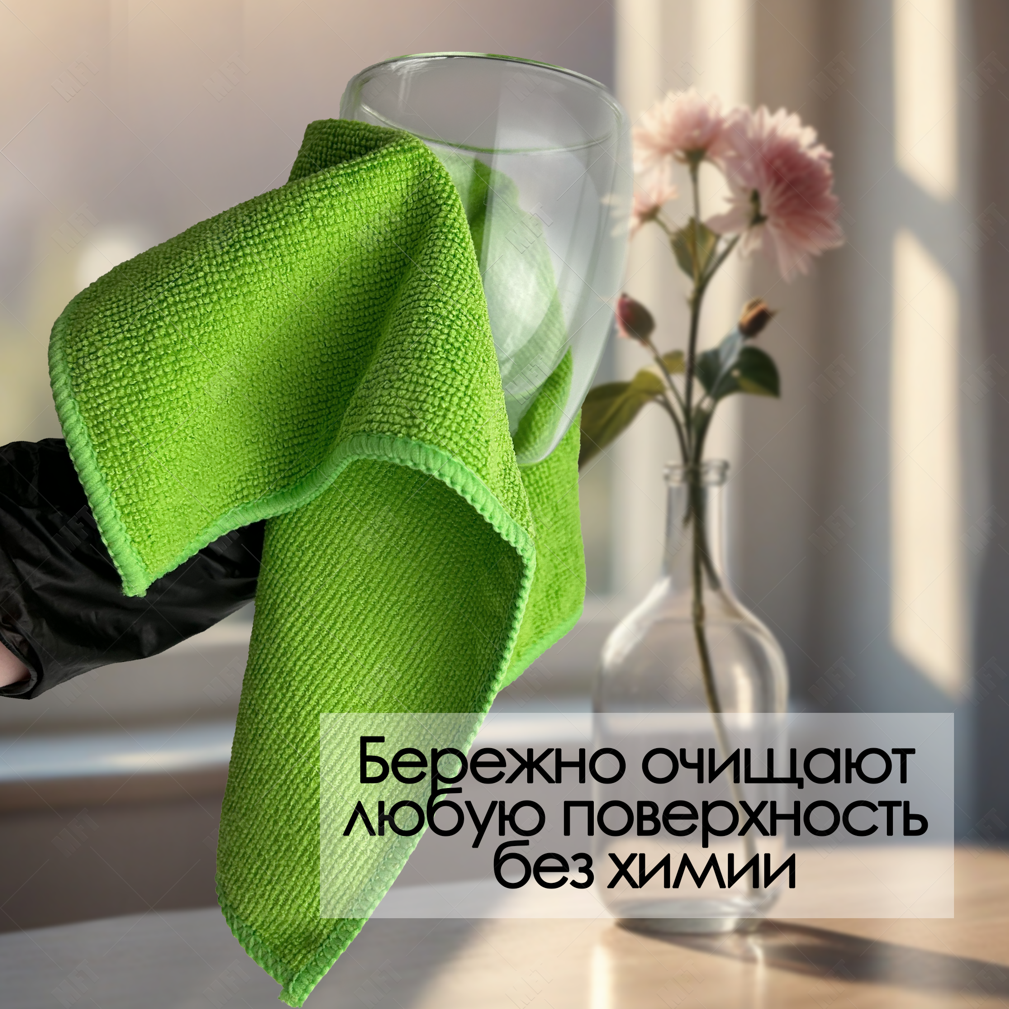 10 цен на Салфетки для уборки из микрофибры универсальные 30х30 см, 10 шт. в упаковке, цвет зеленый