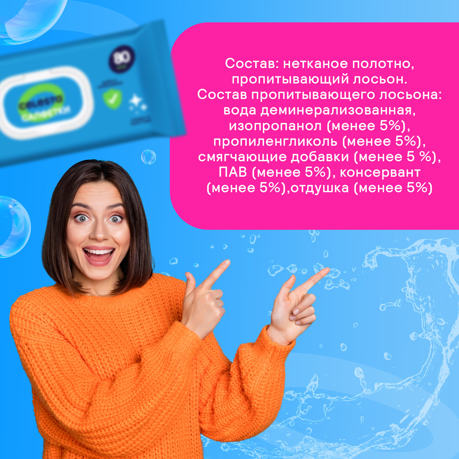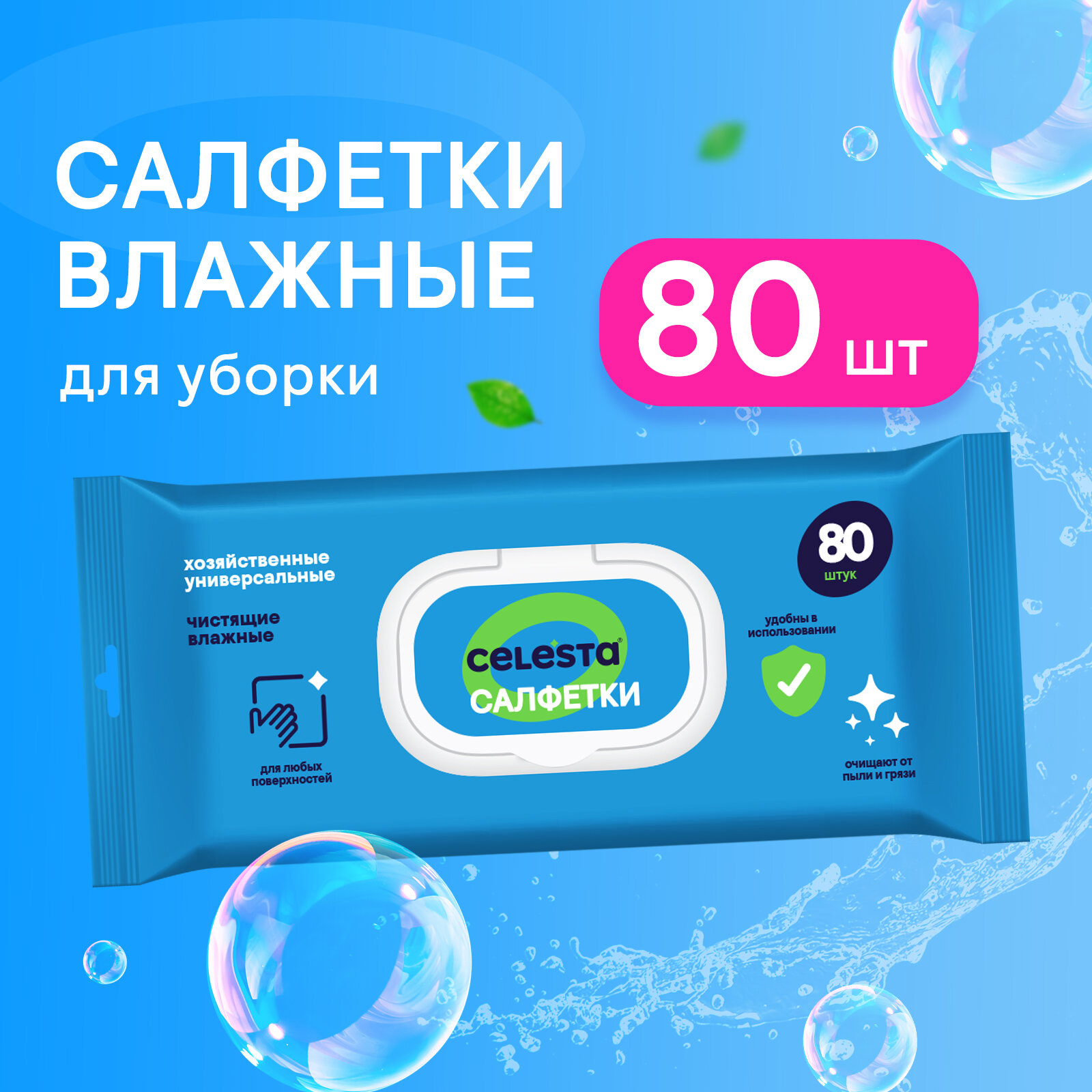 Влажные салфетки Celesta хозяйственные для уборки дома, кухни и ванной, универсальные, 80 штук информация: