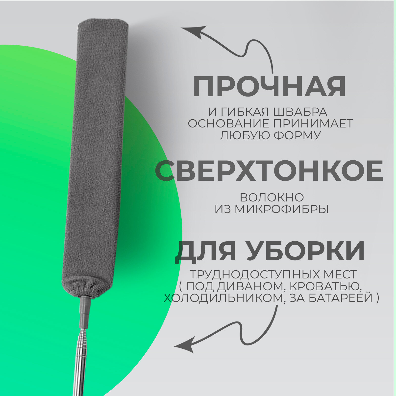 Пипидастр, щетка для уборки, сметка для пыли, щетка ручная телескопическая 30-80 см, микрофибра 17 см