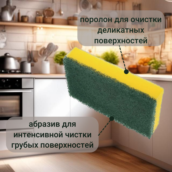 | Дополнительная информация | Губка, для мытья, губки, с абразивом, с абразивным, для уборки, уборка, для кухни, для ванной, на кухню |