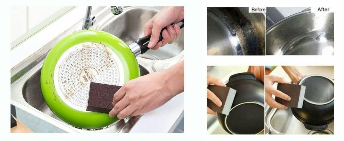 Отзывы на Меламиновая губка для мытья посуды / Абразивная, наждачная губка для чистки сковород и кастрюль, LettBrin