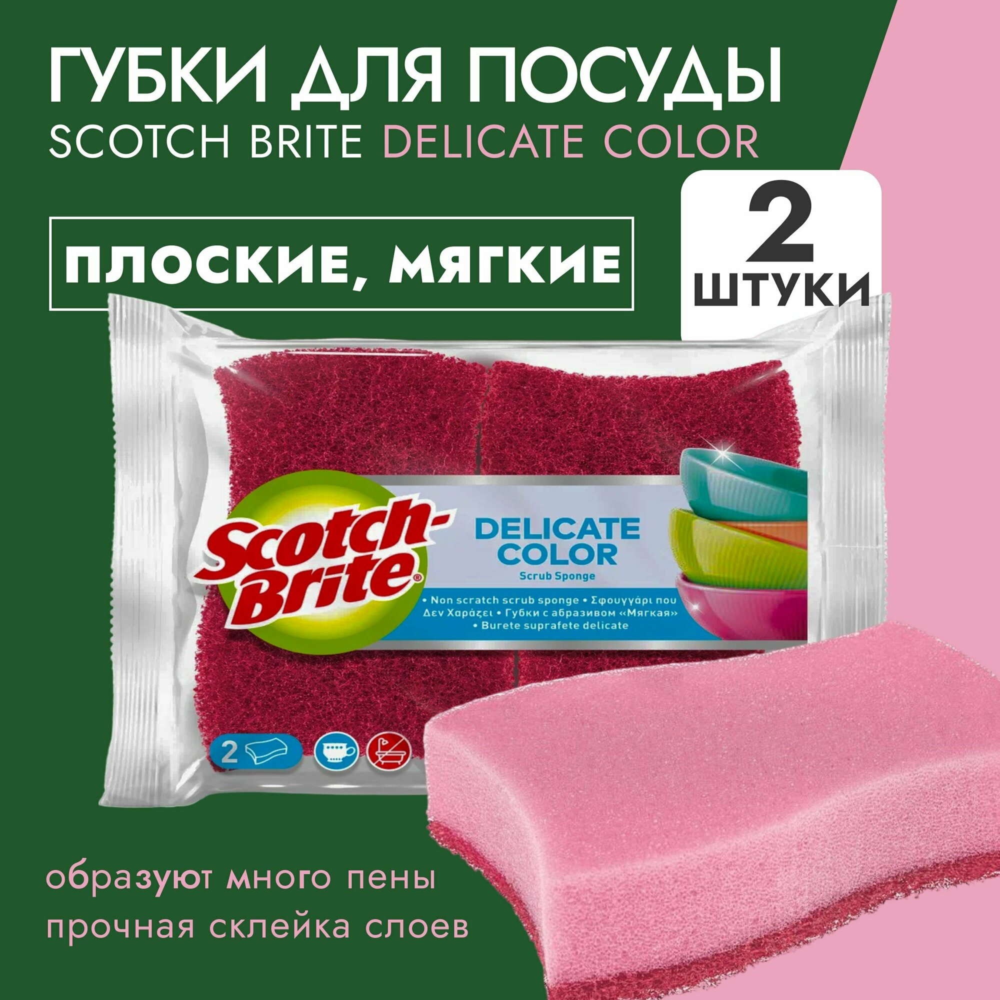 10 цен на Губки Scotch-Brite Delicate color (2306) с абразивом плоские, мягкие 2 шт-1уп