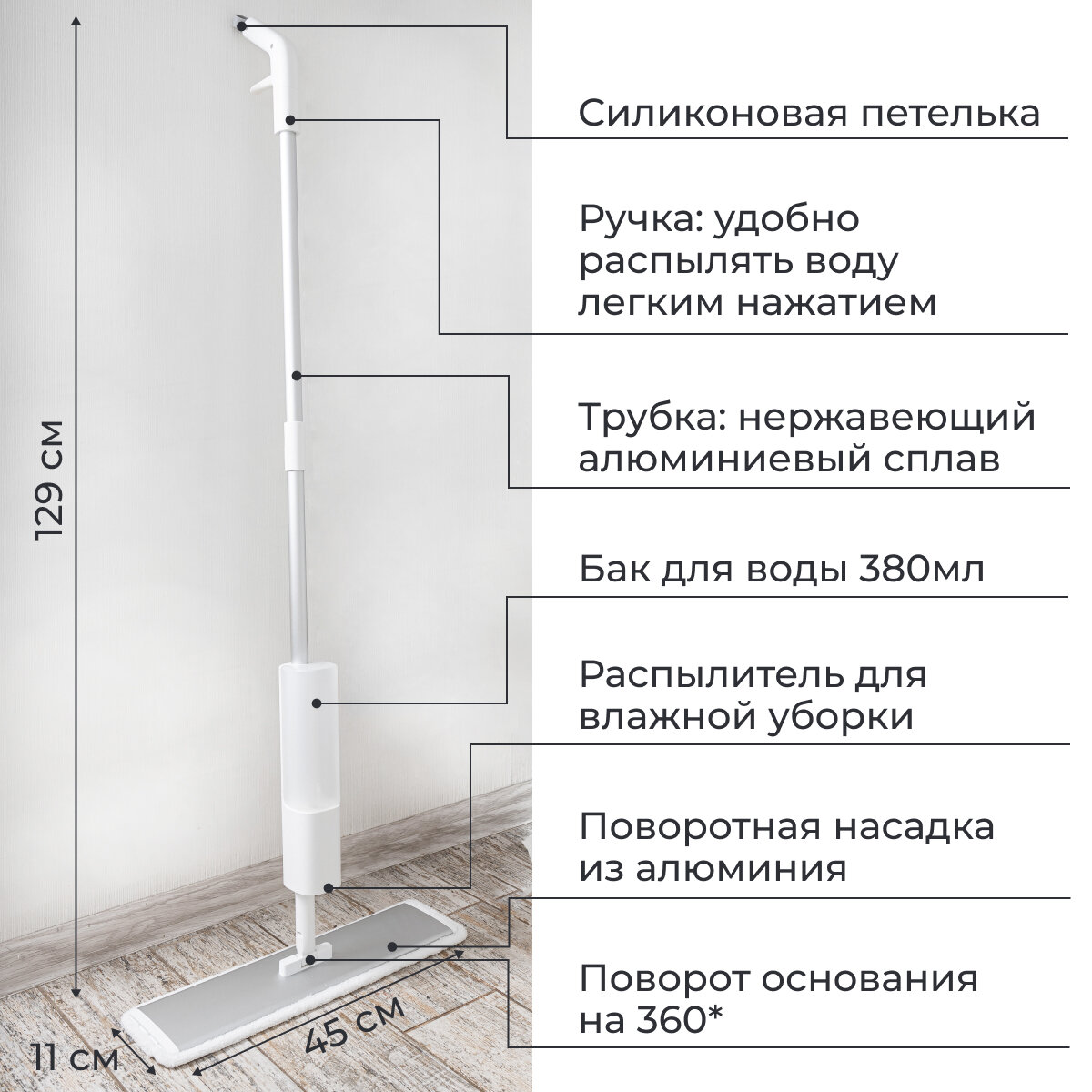 Швабра с распылителем и насадкой из микрофибры Blue Fish Squeezing Water Sponge Mop SP03 белая информация: