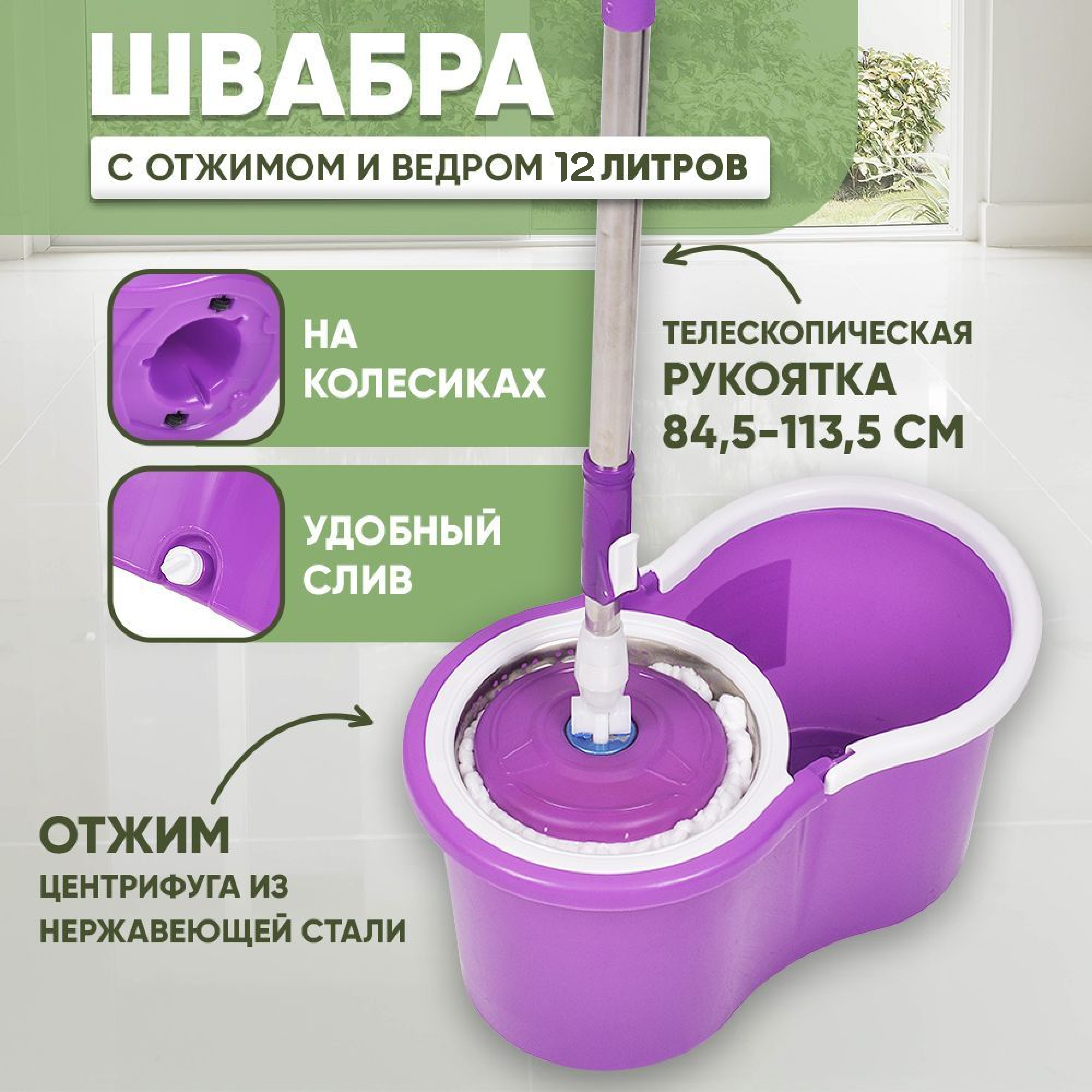 Отзывы на Швабра с отжимом и ведром, набор для уборки GEEK LIFE, фиолетовый