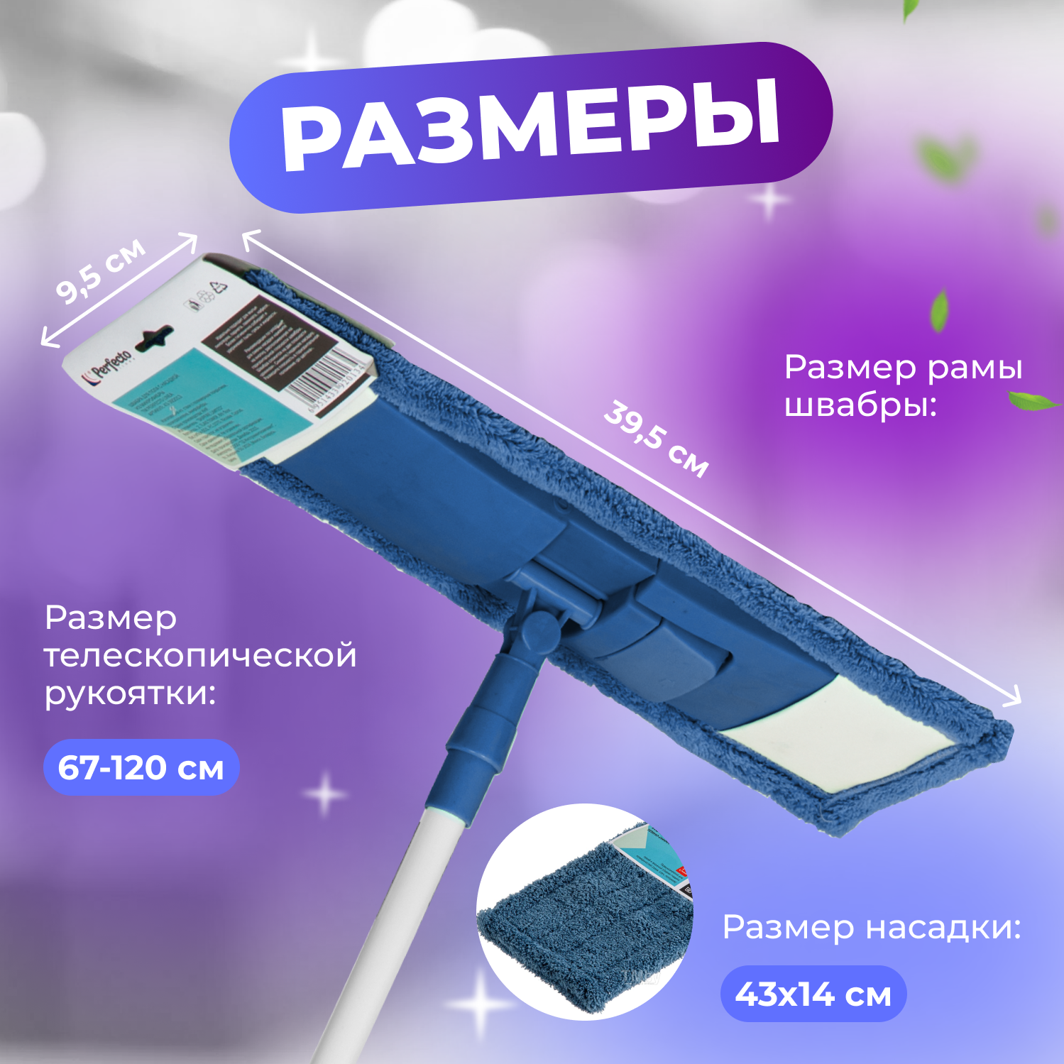 10 цен на Швабра для пола PERFECTO LINEA с насадкой из микрофибры синяя (43-392012)