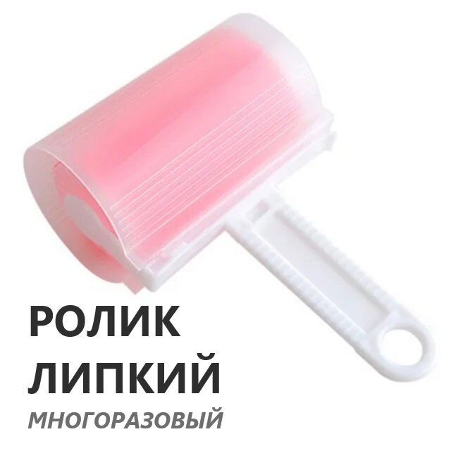 Ролик липкий многоразовый для одежды от шерсти / Силиконовый ролик моющийся, цвет розовый информация: