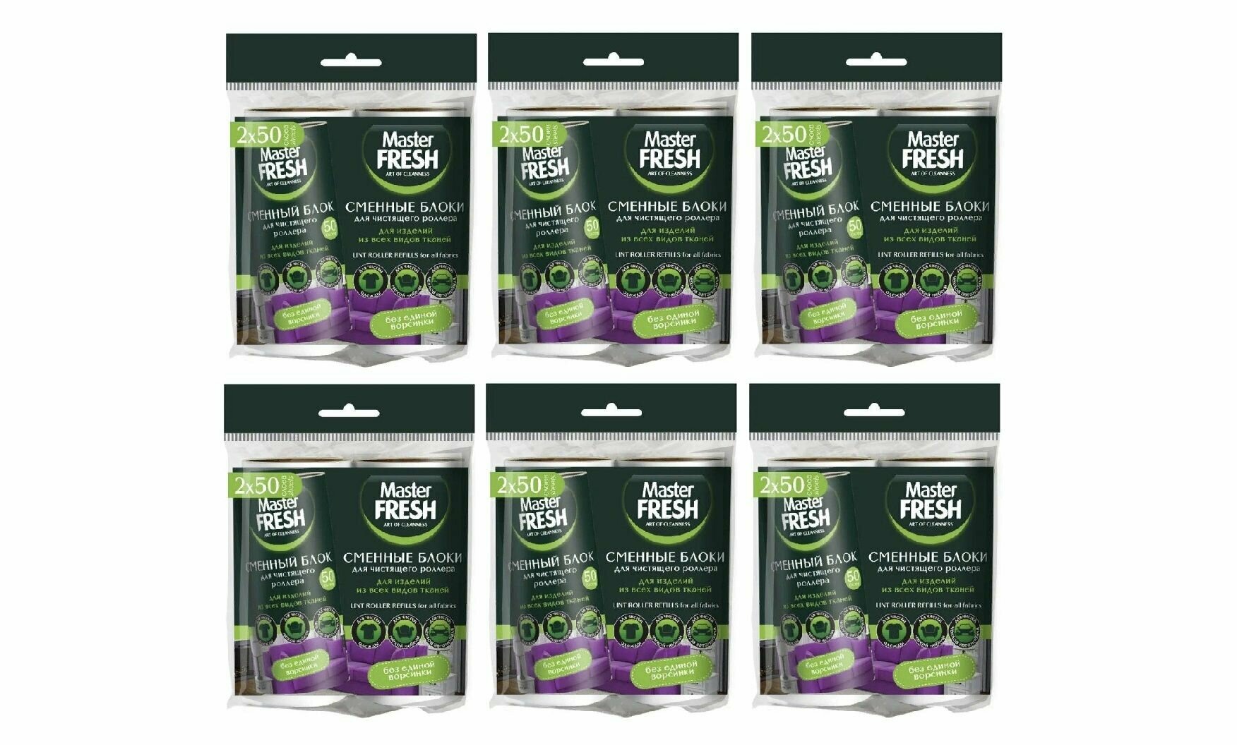 Master Fresh Сменные блоки для роллер - ролика для чистки одежды, 2 штуки, 6 упаковок информация: