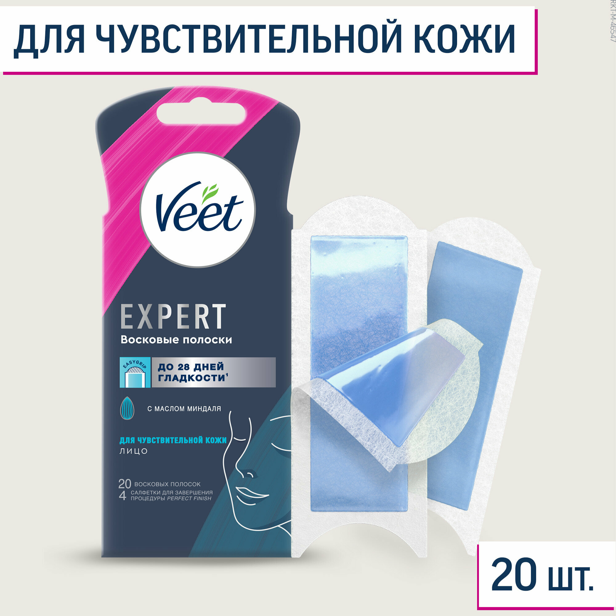 10 цен на Veet Expert восковые полоски для чувствительной кожи (лицо), 20шт. полосок для депиляции = 10шт. сдвоенных полосок