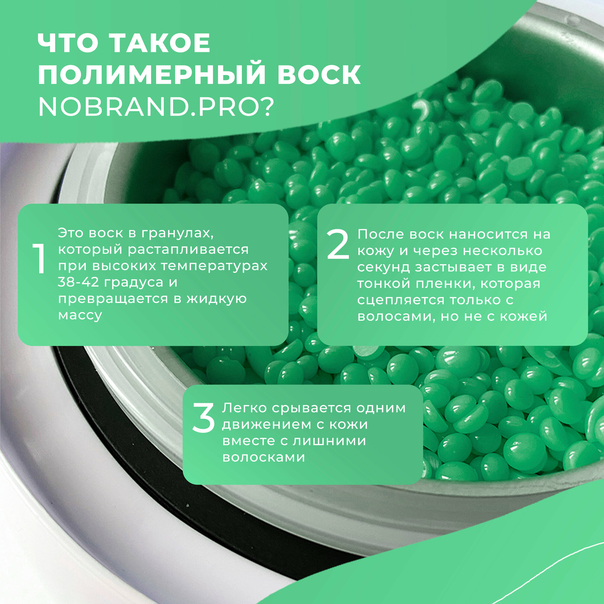 NOBRAND.PRO Пленочный воск для депиляции в гранулах, 600 гр. Полимерный воск горячий для бровей, для бикини, зелёный в банке информация: