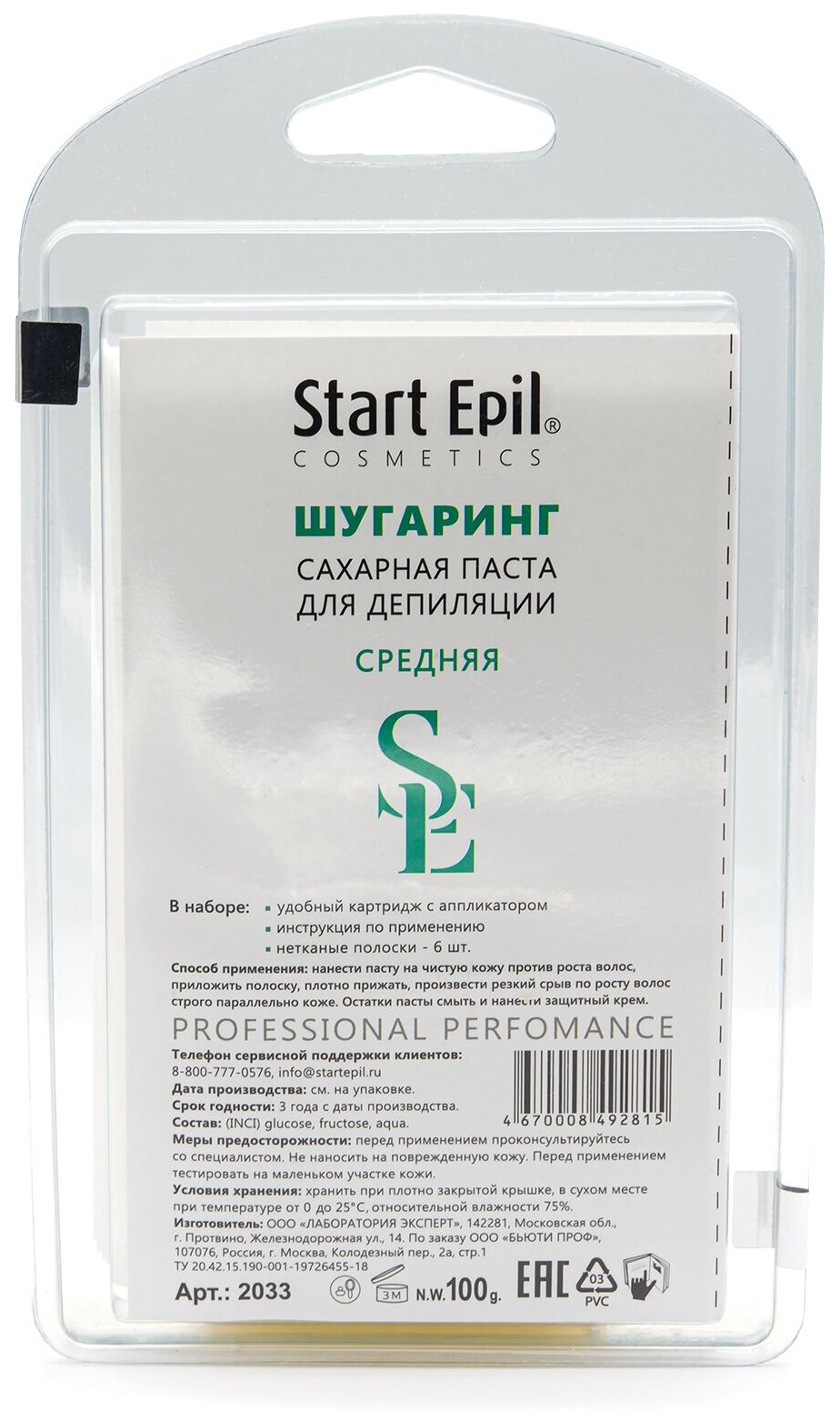 10 цен на Набор для шугаринга Start Epil Сахарная паста в катридже, Средняя, 100 г, бумажные полоски для депиляции