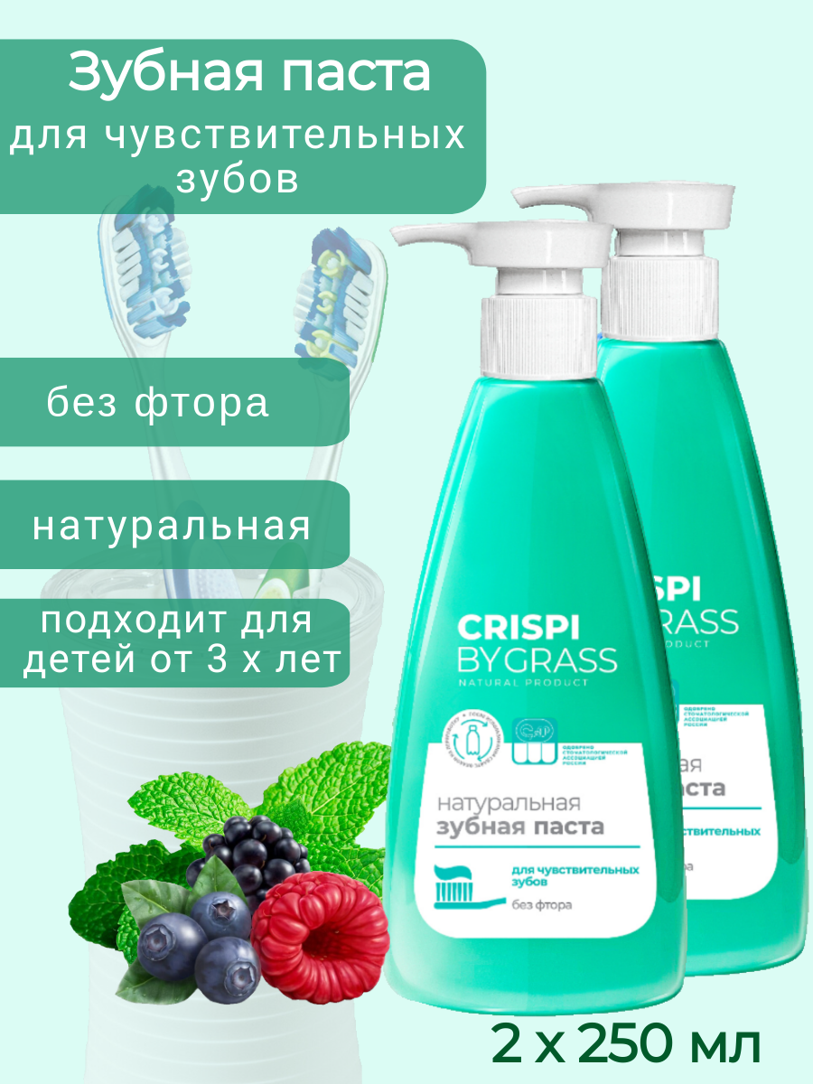 Набор зубных паст Grass Crispi с дозатором для чувствительных зубов, 2 штуки по 250 мл. 899 ₽