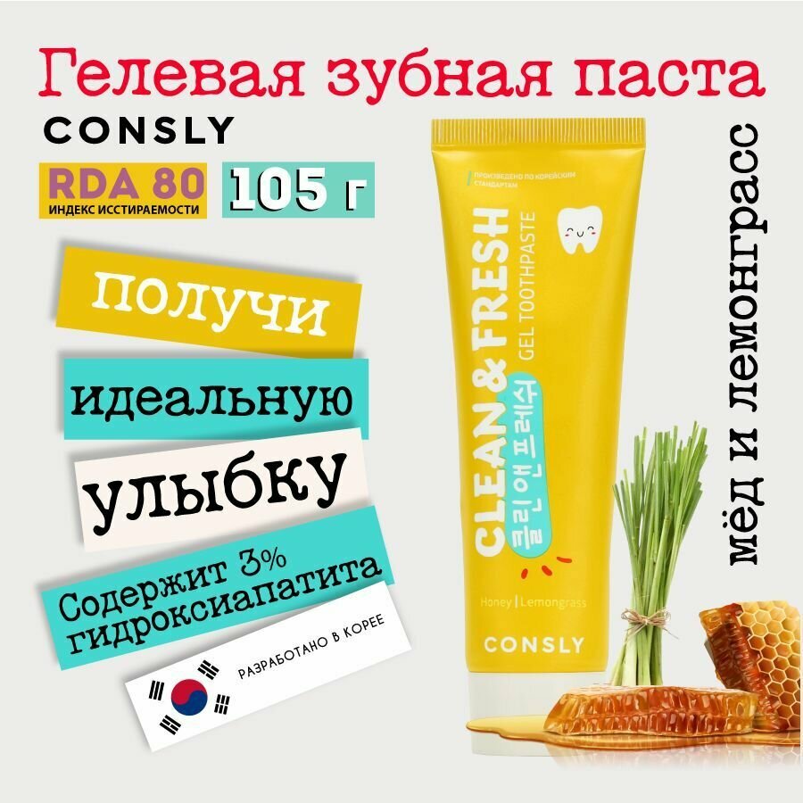 Consly Укрепляющая гелевая зубная паста Clean&Fresh с экстрактами мёда и лемонграсса, 105г 214 ₽