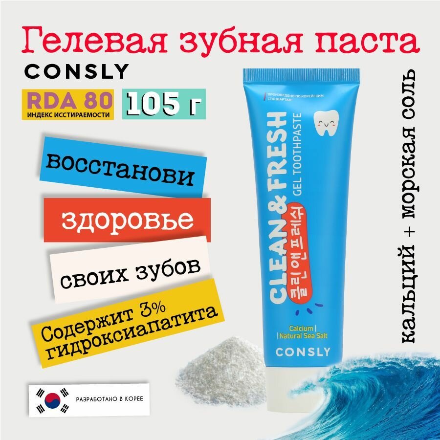 Гелевая зубная паста Consly Clean&Fresh с кальцием и натуральной морской солью, 105 гр информация: