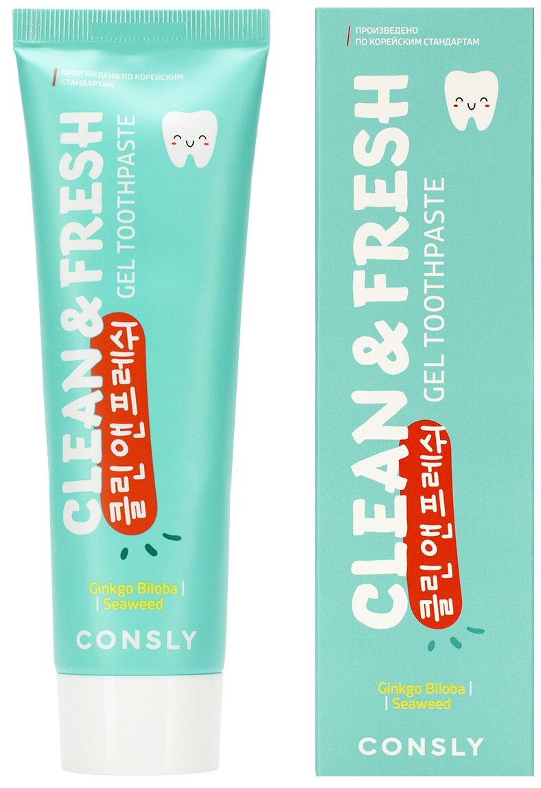 Consly Гелевая зубная паста Clean and Fresh с экстрактами гинкго билоба и морских водорослей, 105г информация: