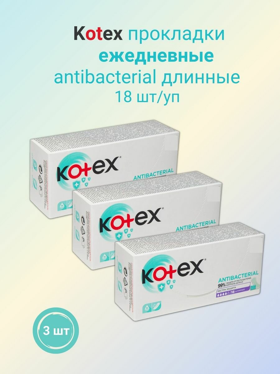 KOTEX Прокладки ежедневные ANTIBACTERIAL Длинные №18