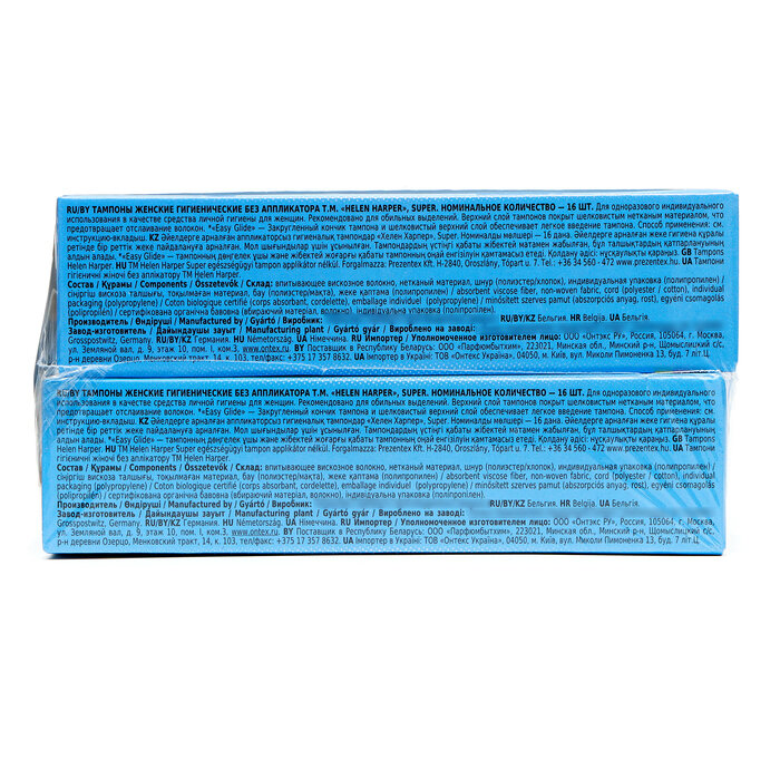 Тампоны безаппликаторные Helen Harper, Super, 16 шт (4 упаковки) 9947075