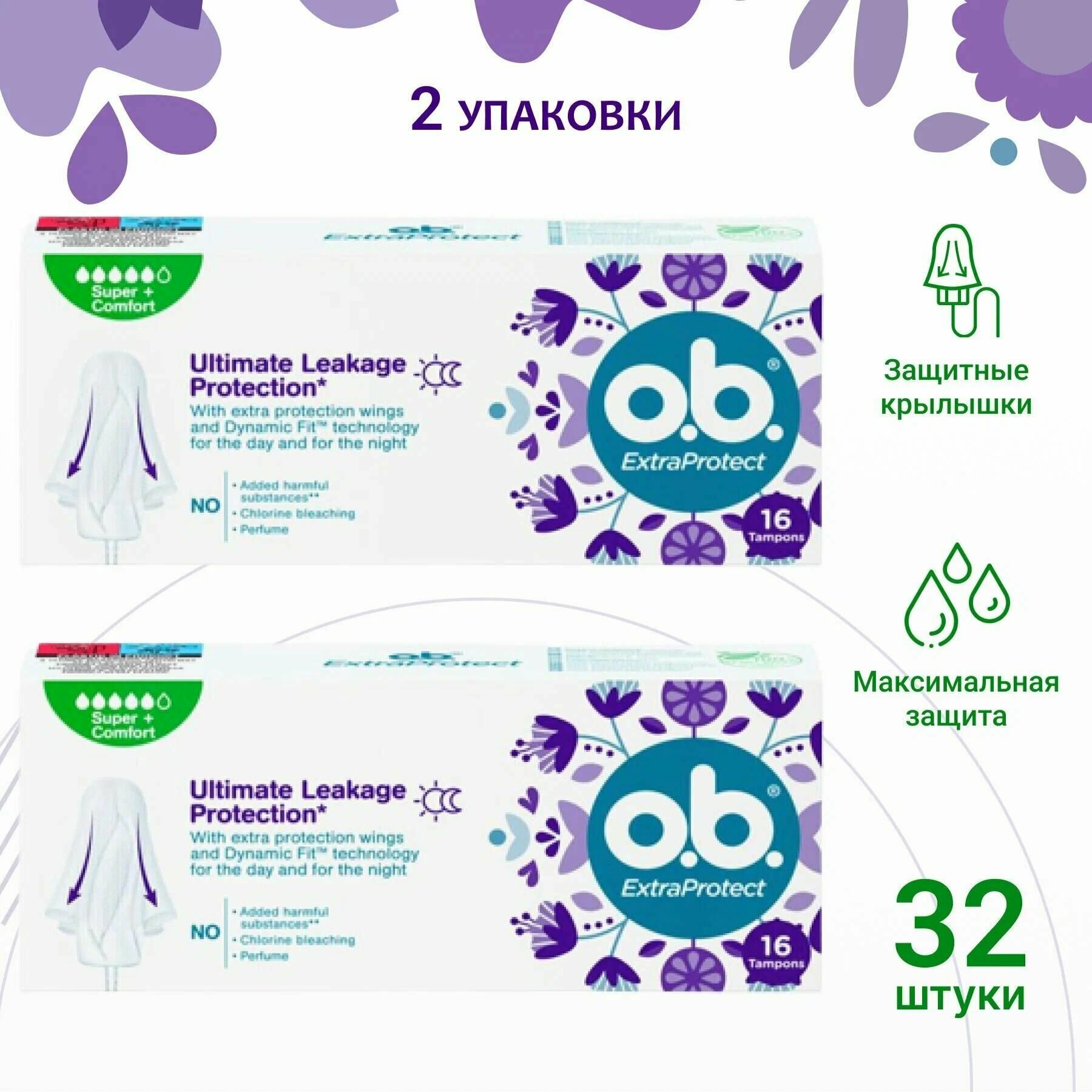 Тампоны женские гигиенические O.B. ExtraProtect Super + Comfort (obi/оби для женщин для интимной гигиены), 2 упаковки по 16 шт. информация: