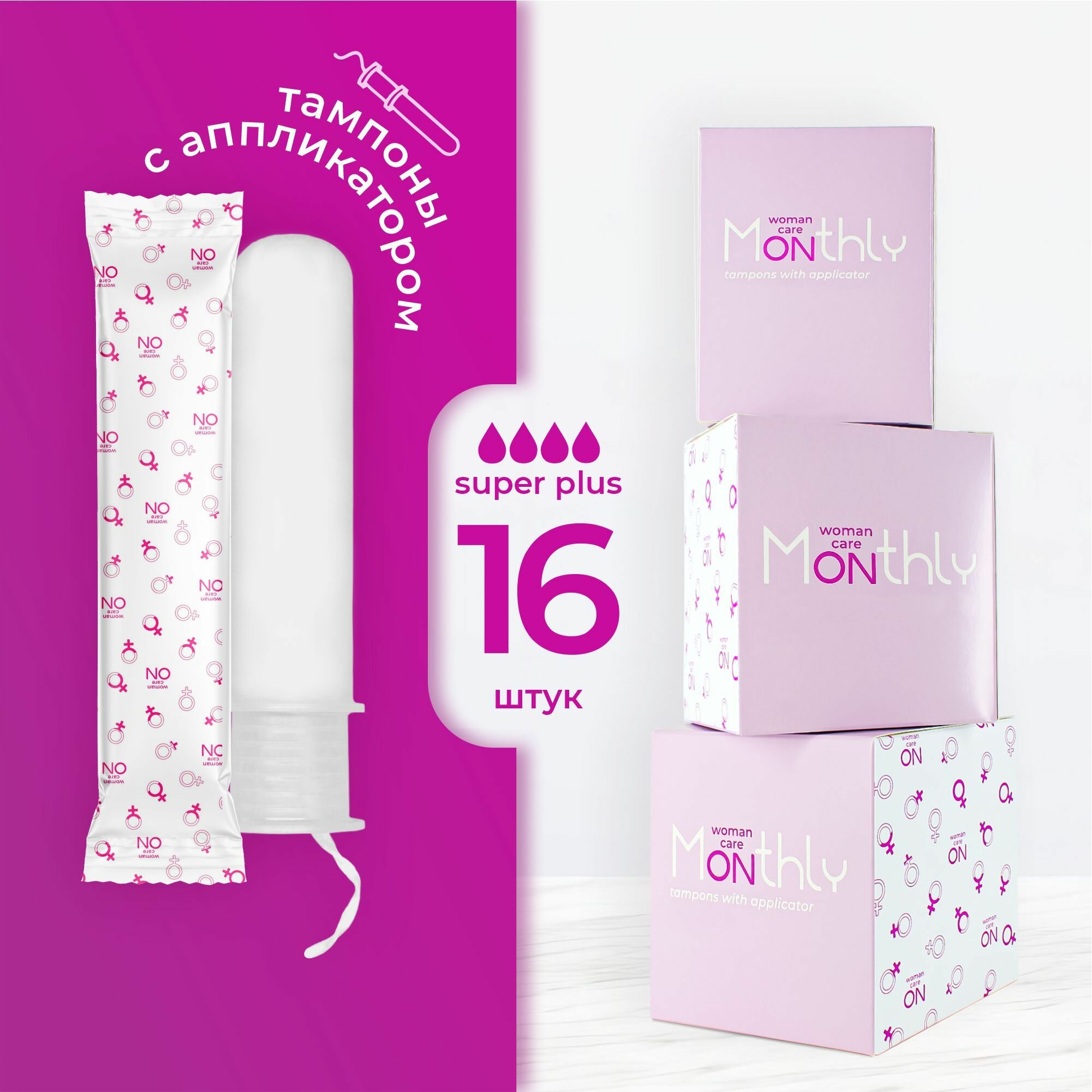 Тампоны женские гигиенические Monthly Compact Super plus с аппликатором, 16 шт информация: