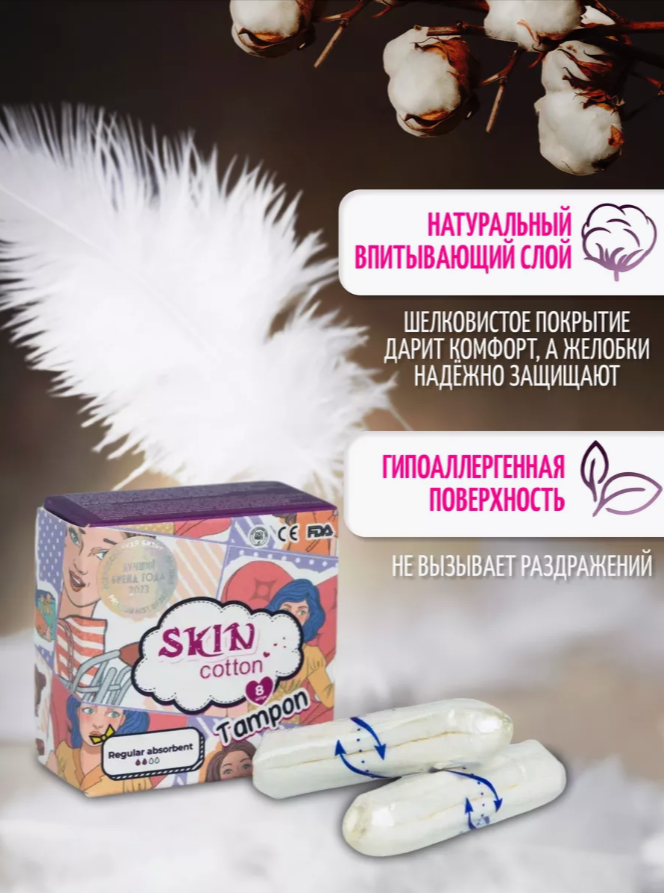 Тампоны "Skin Cotton" Regular Absorbents, 2 капли, 48 штук информация: