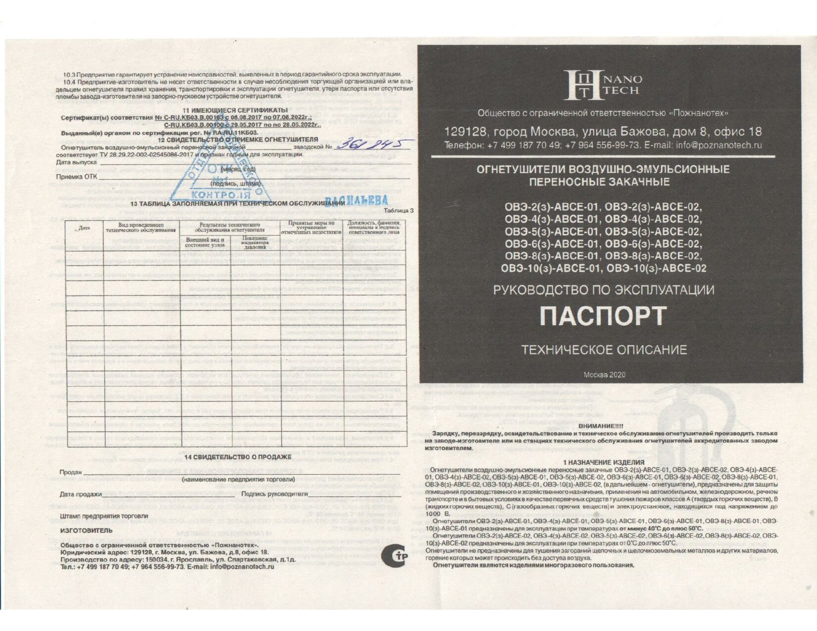 Огнетушитель Воздушно-эмульсионный ОВЭ-2 (з) АВСЕ-01 всесезонный информация: