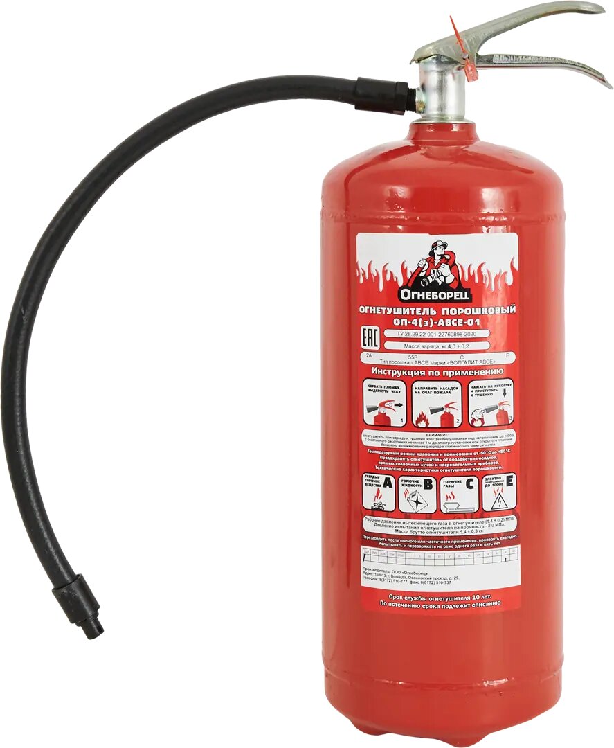 Огнетушитель порошковый ОП-4 З класс пожара АВСЕ информация: