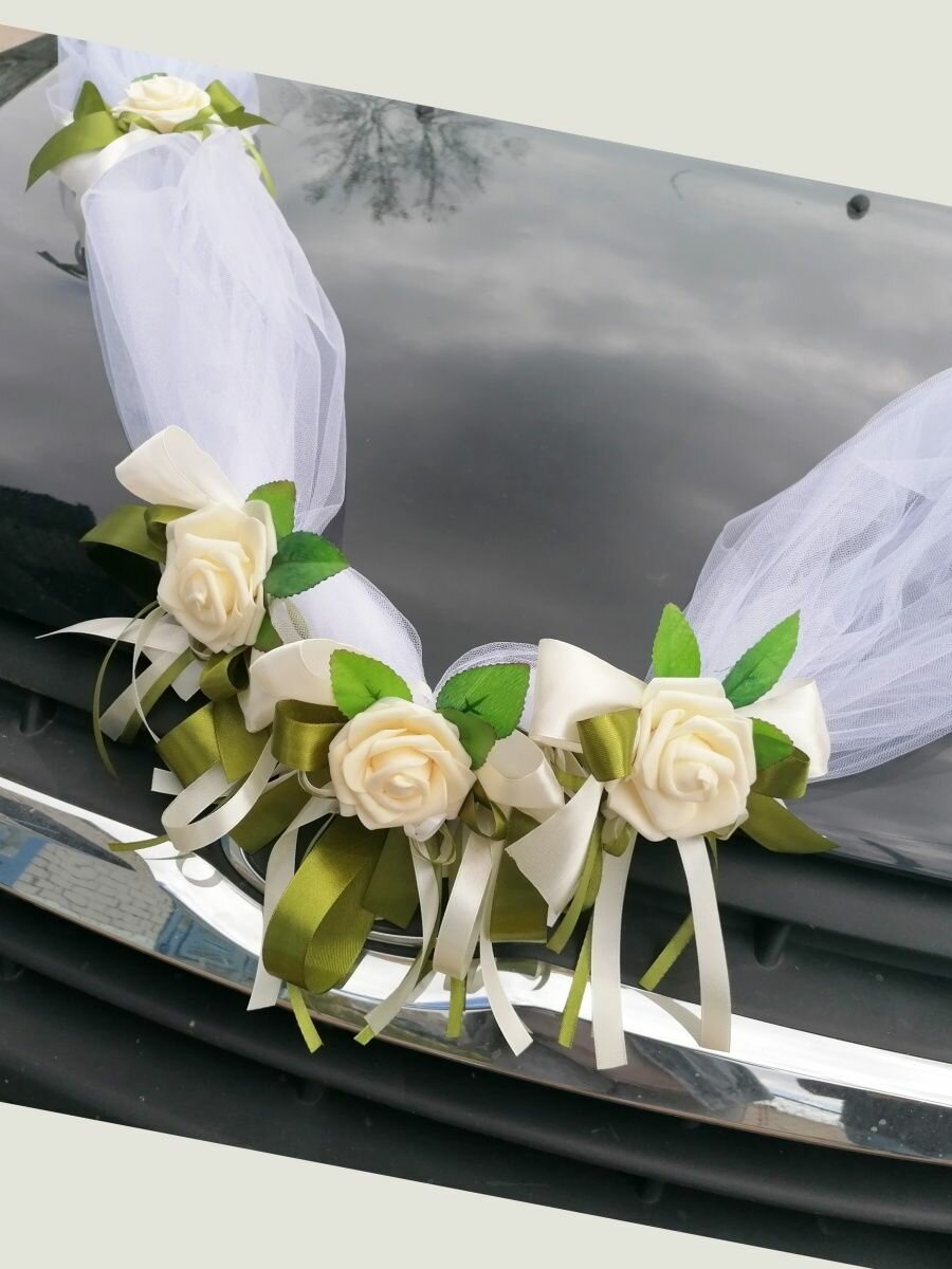 Свадебная лента на машину с цветами и бантами. Украшение на свадебный автомобиль. 1 590 ₽