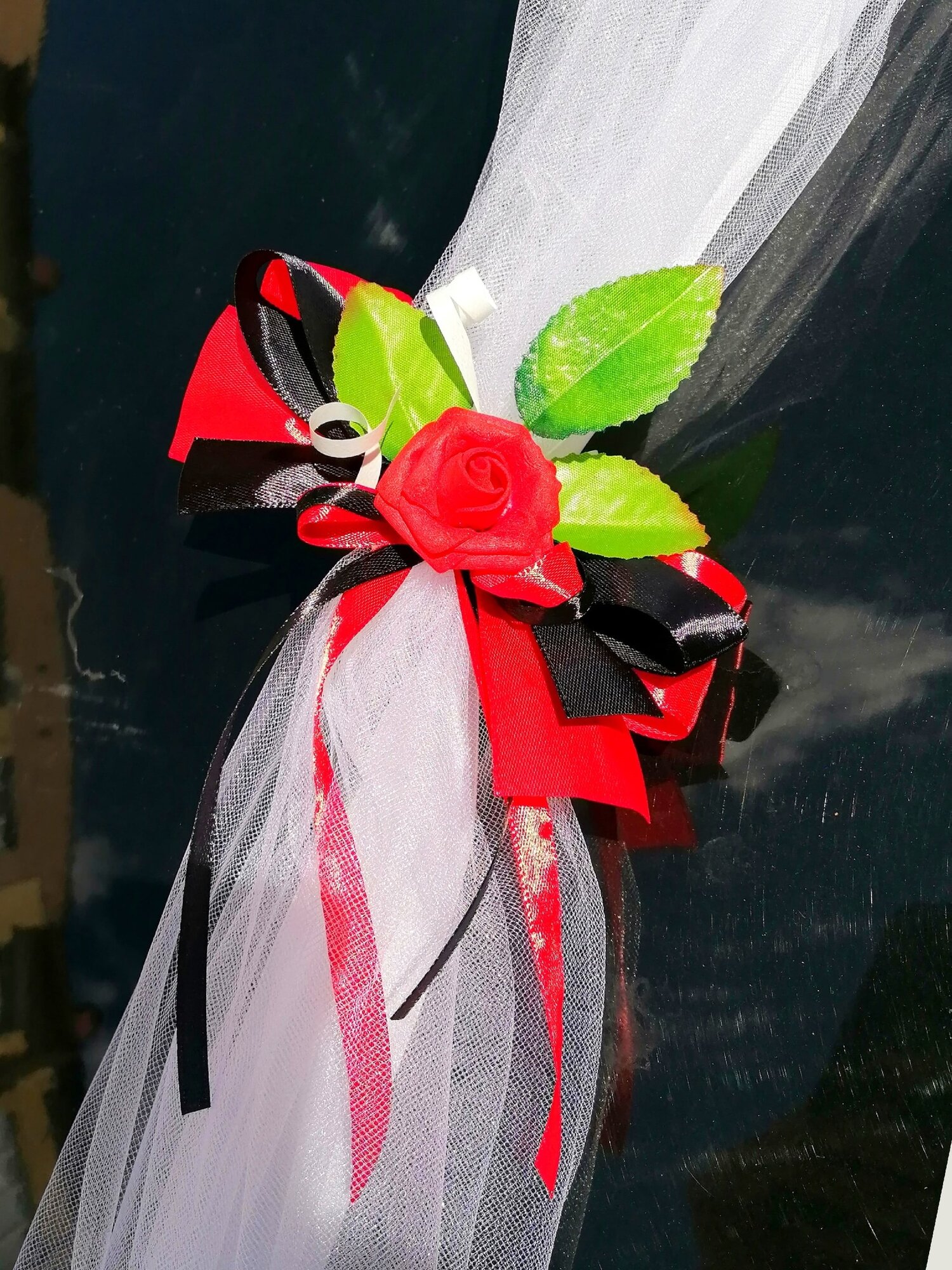 Лента свадебная для украшения автомобиля. Красная/черная информация: