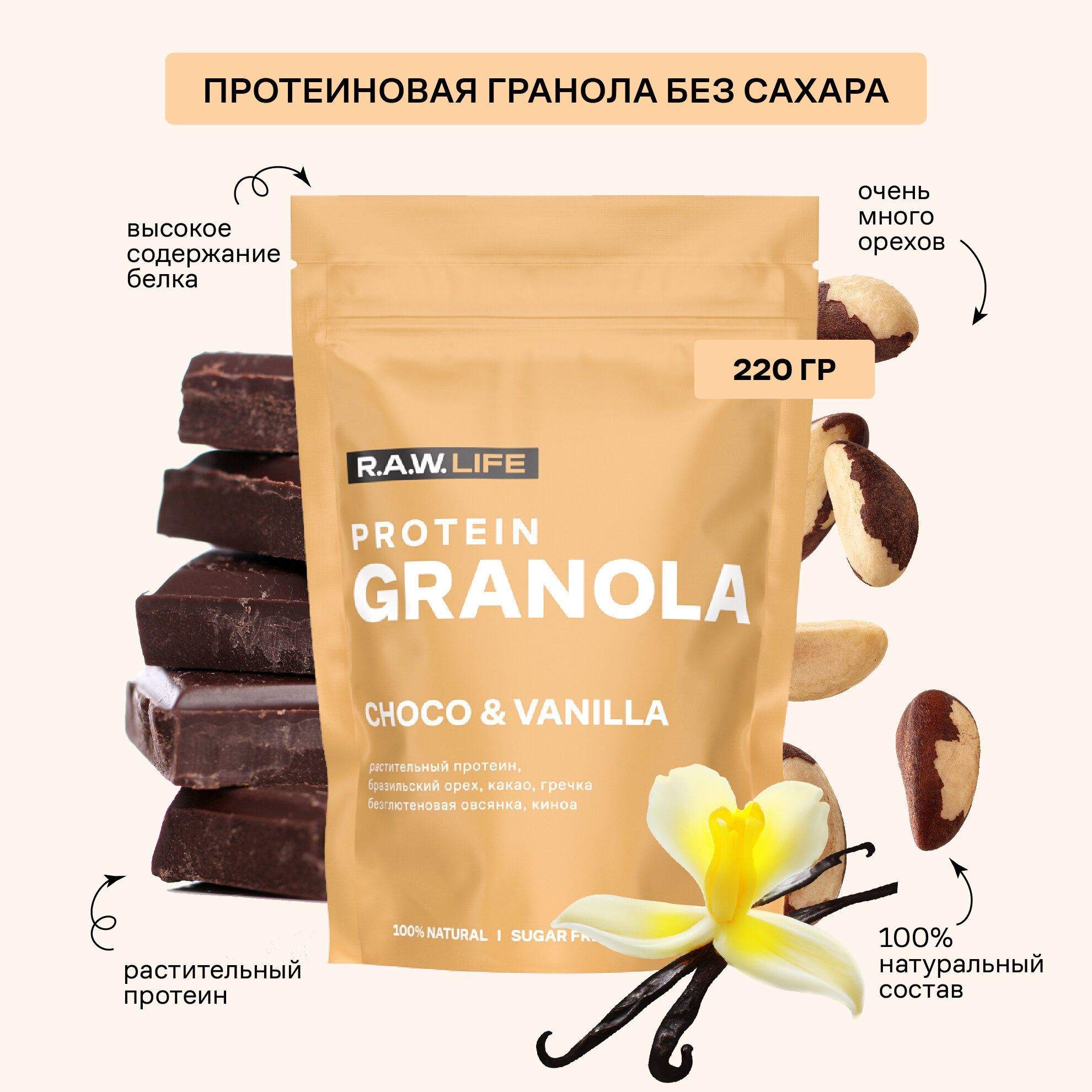 10 цен на Гранола протеиновая/ R.A.W. LIFE/Шоколад-Ваниль/ 220гр / Без сахара/ Без глютена