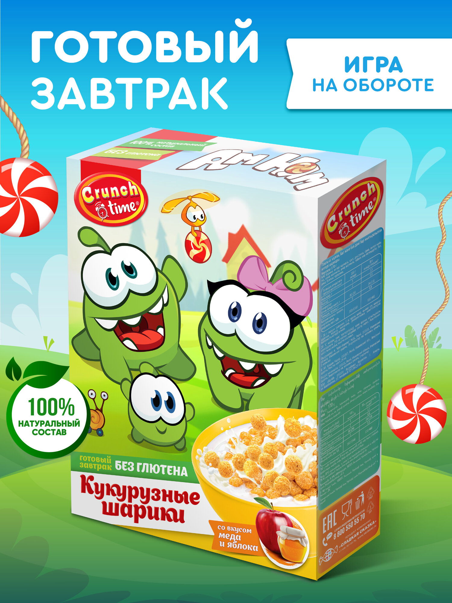 Натуральный сухой завтрак детский шарики кукурузные со вкусом меда и яблока АМ-НЯМ CRUNCH TIME 170 г Готовый перекус информация: