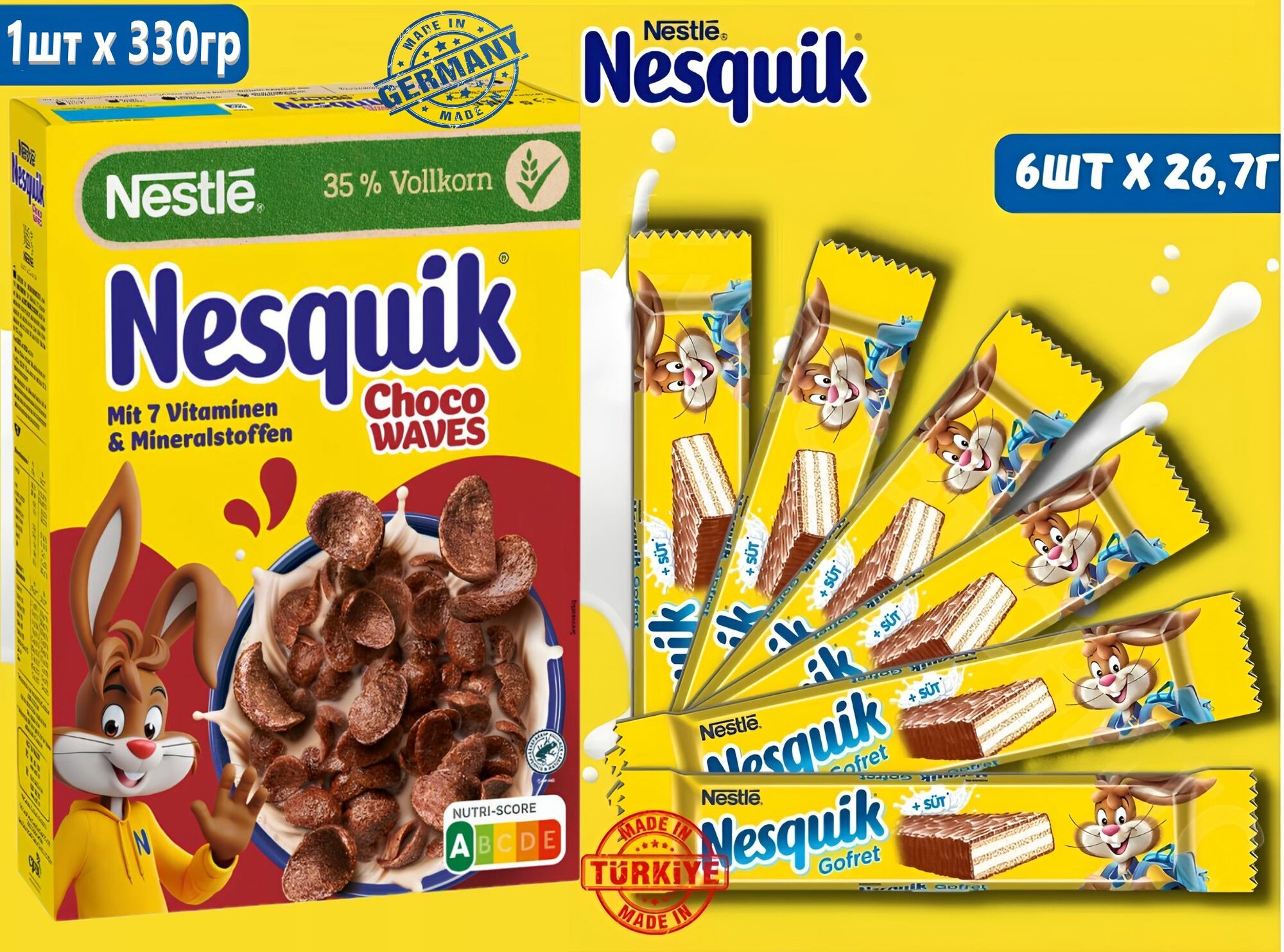 Готовый завтрак Nestle Nesquik 1шт /Вафельные батончики Несквик Gofret 6шт информация: