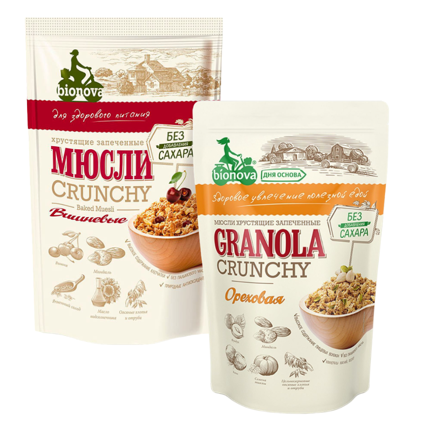 10 цен на Мюсли "Бионова" вишневые 400 грамм+ Мюсли "Бионова" ореховые 400 грамм