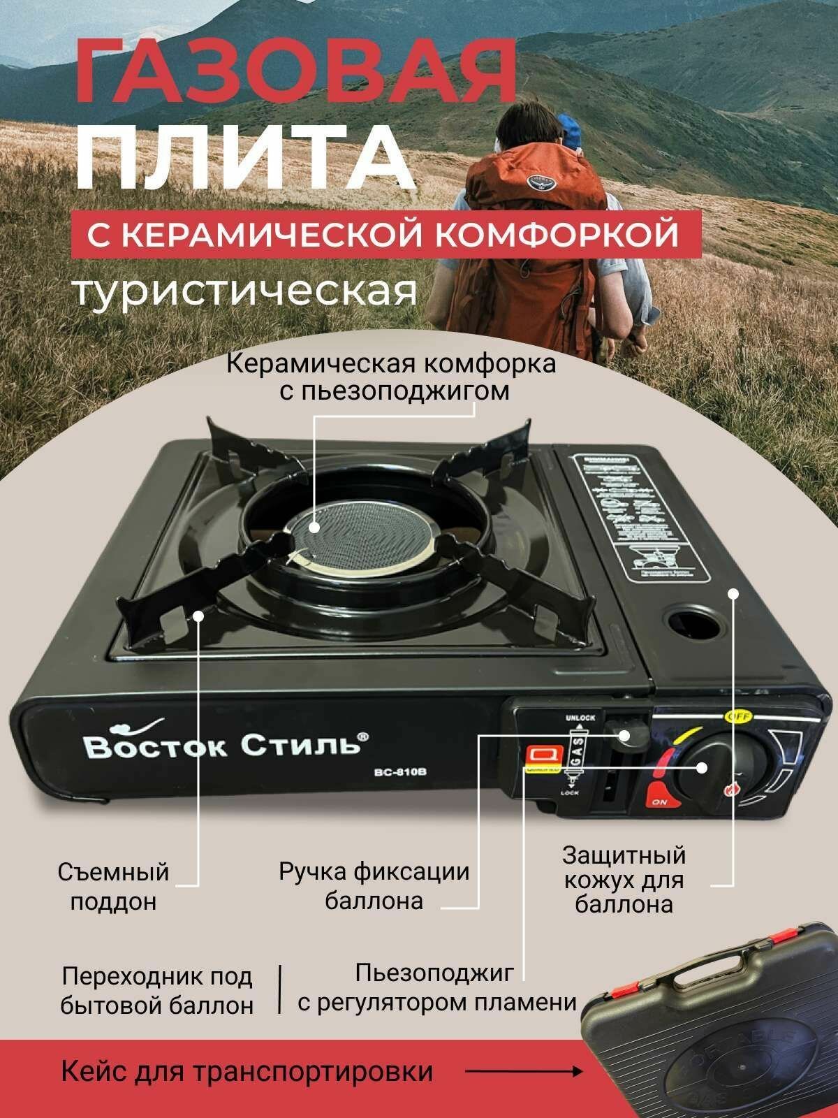 Плита газовая туристическая с керамической горелкой с переходником в кейсе Восток Стиль. информация: