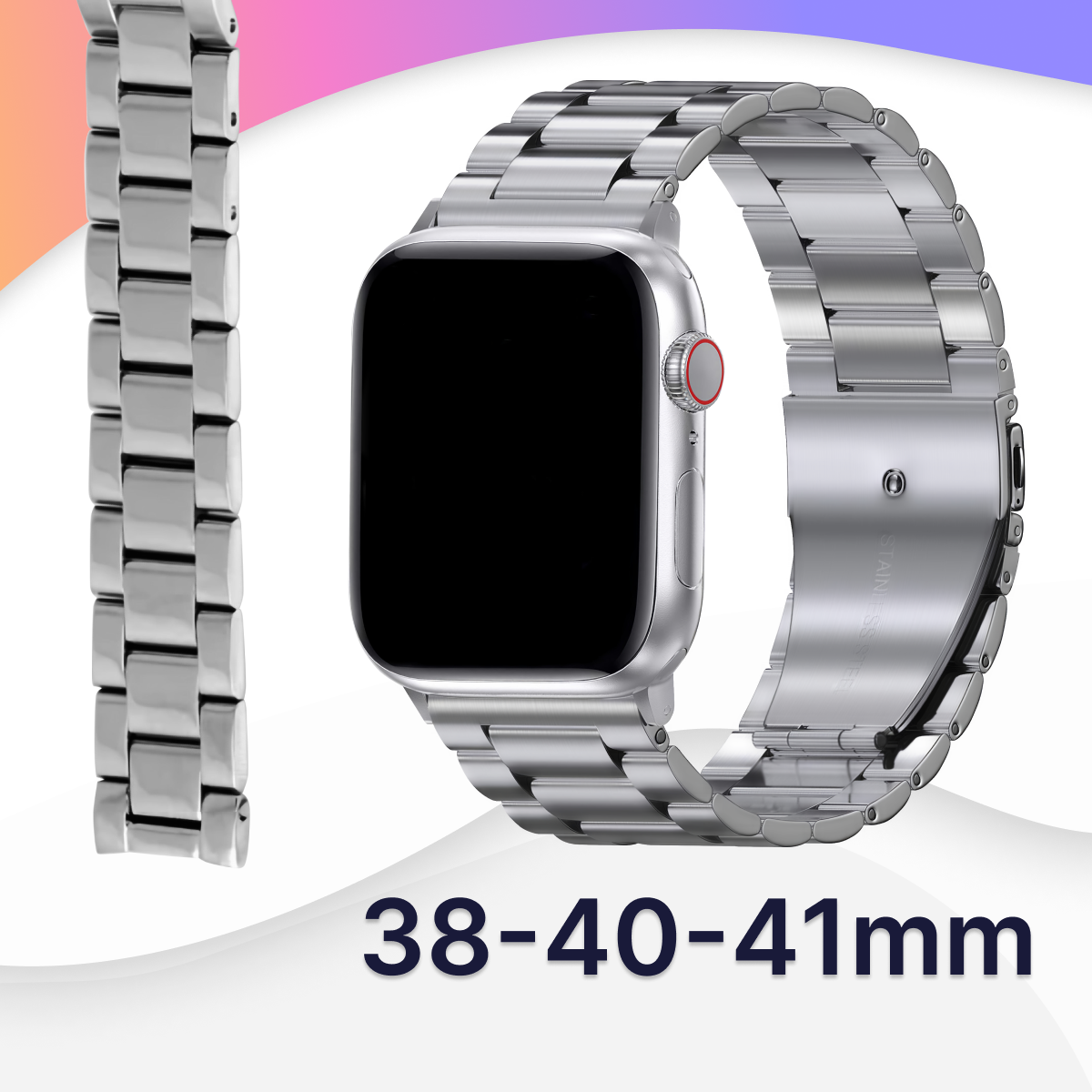 10 цен на Блочный ремешок для Apple Watch 38-40-41 mm, Series 1-9, SE / Сменный браслет для смарт часов на застежке Эпл Вотч 38-41 мм / Серебро