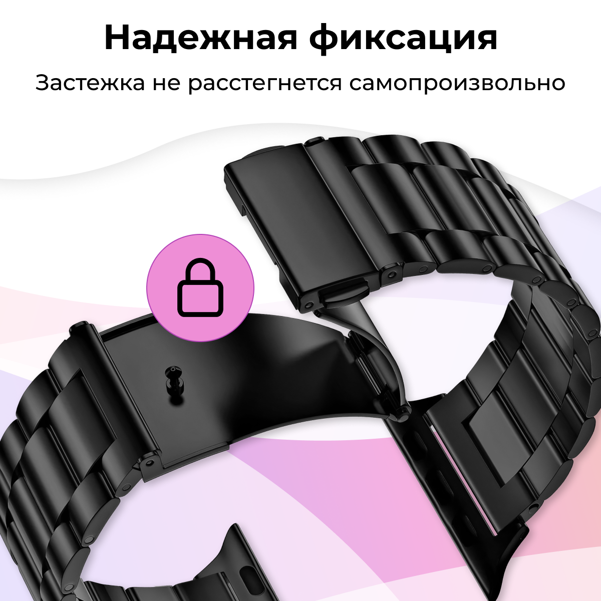 | Дополнительная информация | Ремешок изготовлен из прочной нержавеющей стали. Материал устойчив к сколам и царапинам. Браслет отлично подходит для ежедневного использования. Благодаря замку-магниту, вы сможете быстро и надежно зафиксировать смарт-часы на запястье. Ремешок дополнит дизайн смарт-часов и подчеркнет вашу индивидуальность. |