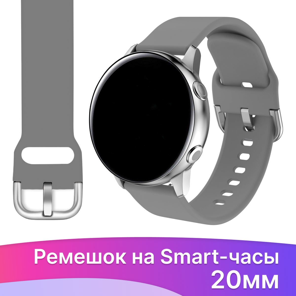 Силиконовый ремешок с застежкой на смарт часы Samsung Galaxy, Amazfit, Garmin, Honor, Huawei, Xiaomi Watch (20 мм) / Сменный браслет на умные часы / Серый информация: