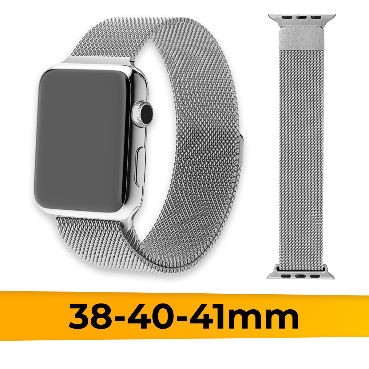 10 цен на Металлический ремешок для Apple Watch 1-9, SE, 38-40-41 mm миланская петля / Браслет для часов Эпл Вотч Series 1-9, СE на магнитной застежке / Серебро
