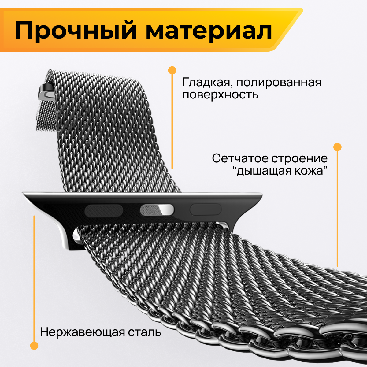 Металлический ремешок для фитнес браслета Xiaomi Mi Band 7 Pro Миланская петля / Браслет для смарт часов на магнитной застежке / Черный 1 063 ₽