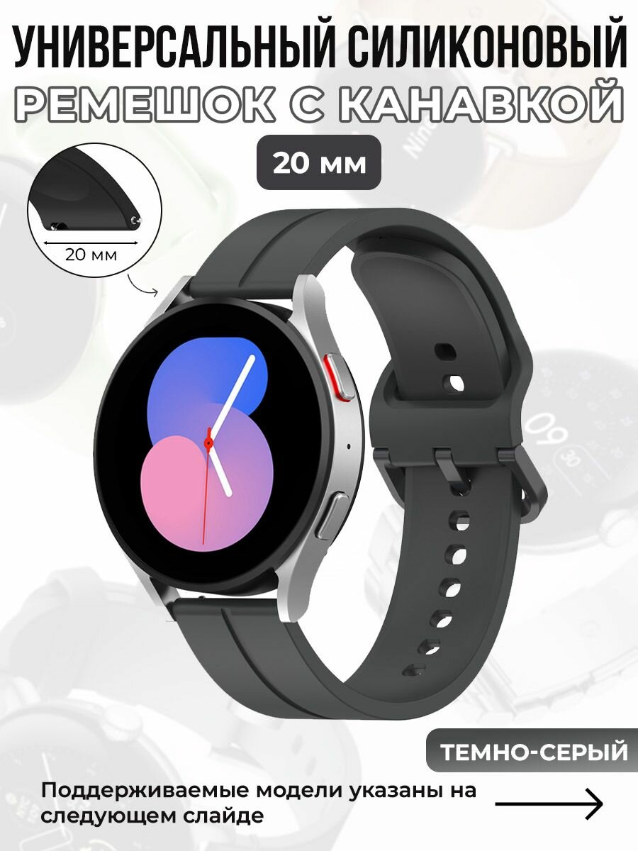 Универсальный силиконовый ремешок с канавкой 20 мм, темно-серый информация: