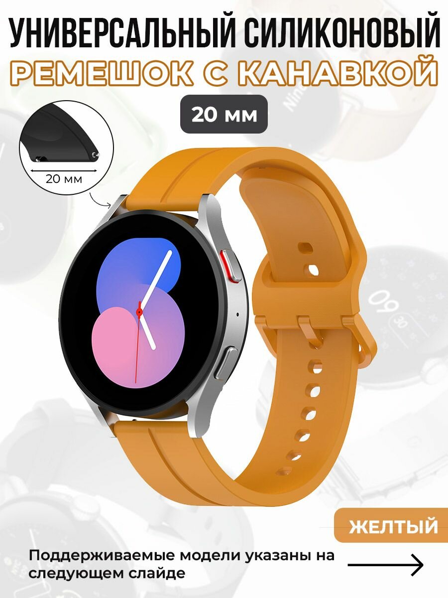 Универсальный силиконовый ремешок с канавкой 20 мм, желтый информация:
