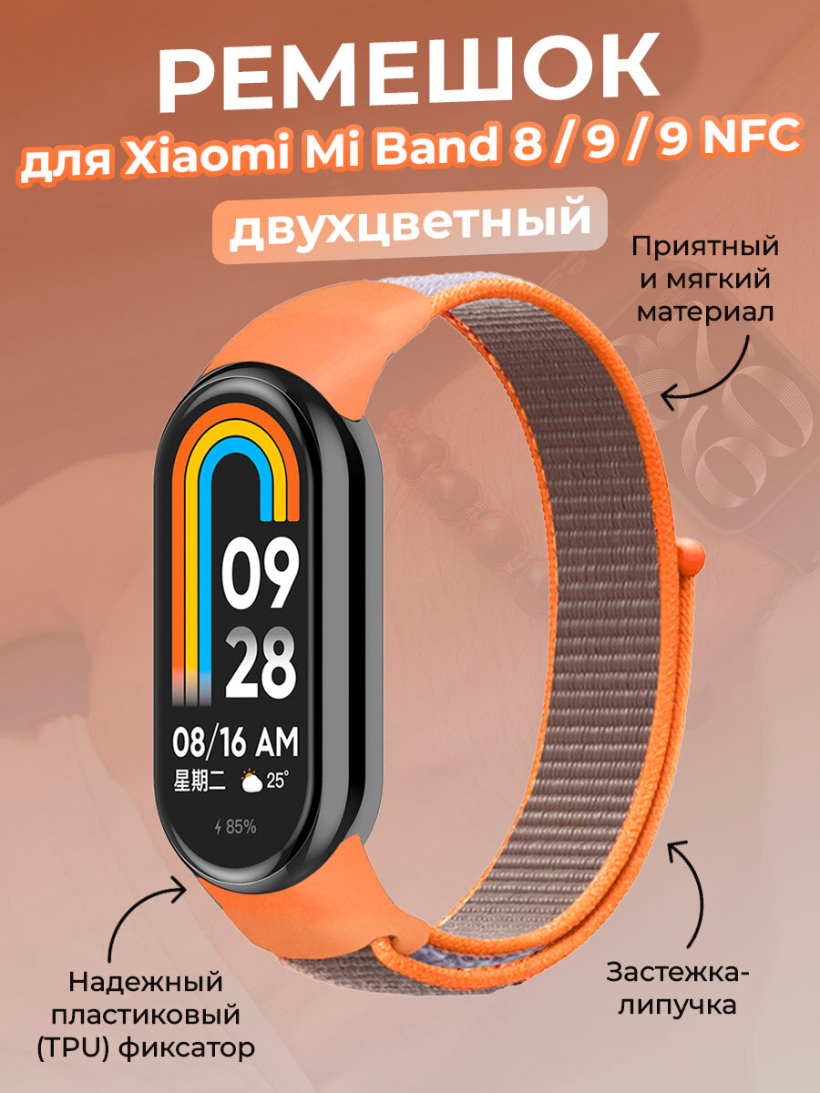 Отзывы на Ремешок с нейлоновой петлей на липучке для Xiaomi Mi Band 8, серо-оранжевый