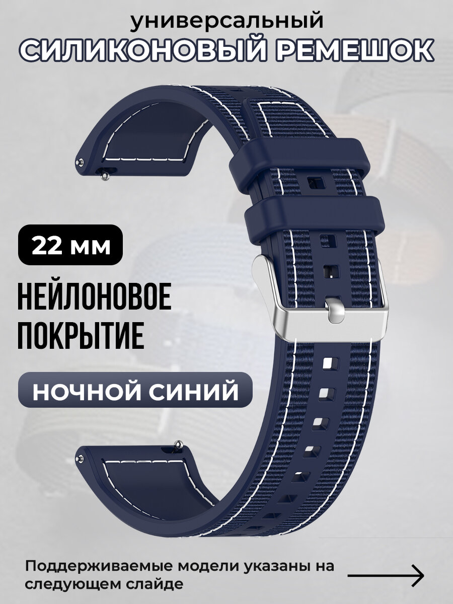 Универсальный силиконовый ремешок с нейлоновым покрытием 22 мм, ночной синий информация: