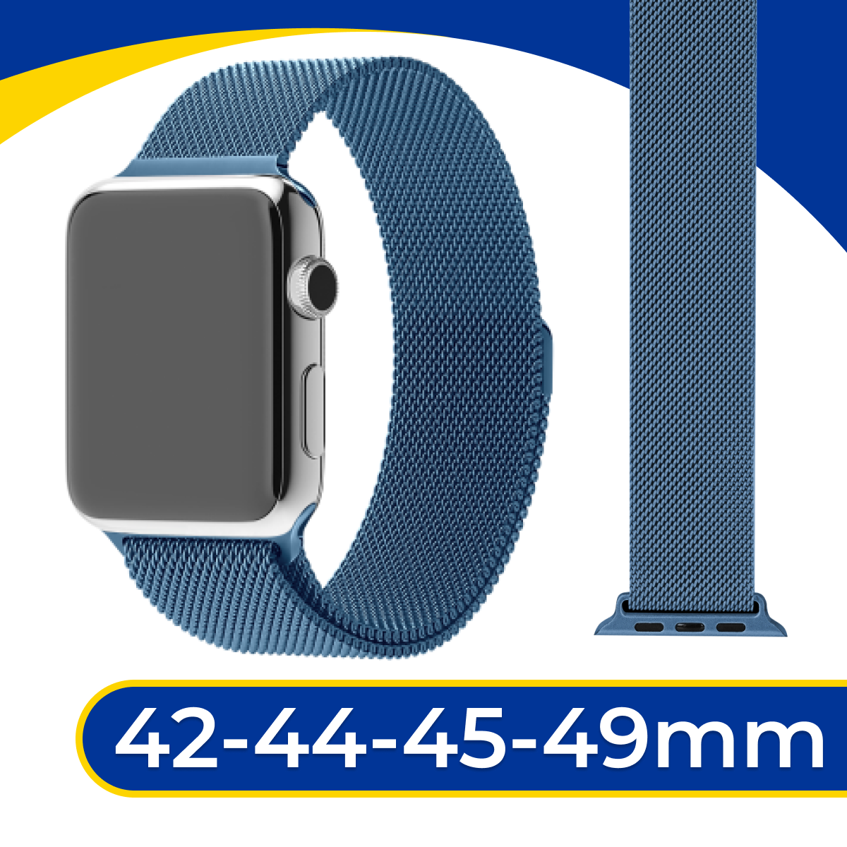 10 цен на Металлический ремешок на Apple Watch 1-9, SE, Ultra 42-44-45-49 мм / Браслет миланская петля для часов Эпл Вотч 1-9, СЕ, Ультра / Лазурный