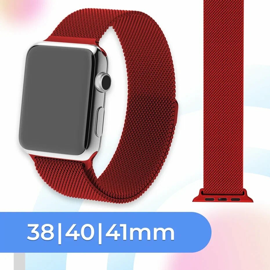 Металлический ремешок для умных часов Apple Watch 38-40-41 mm / Сменный браслет миланская петля для часов Эпл Вотч 1-9, SE, Ultra серии / Красный информация: