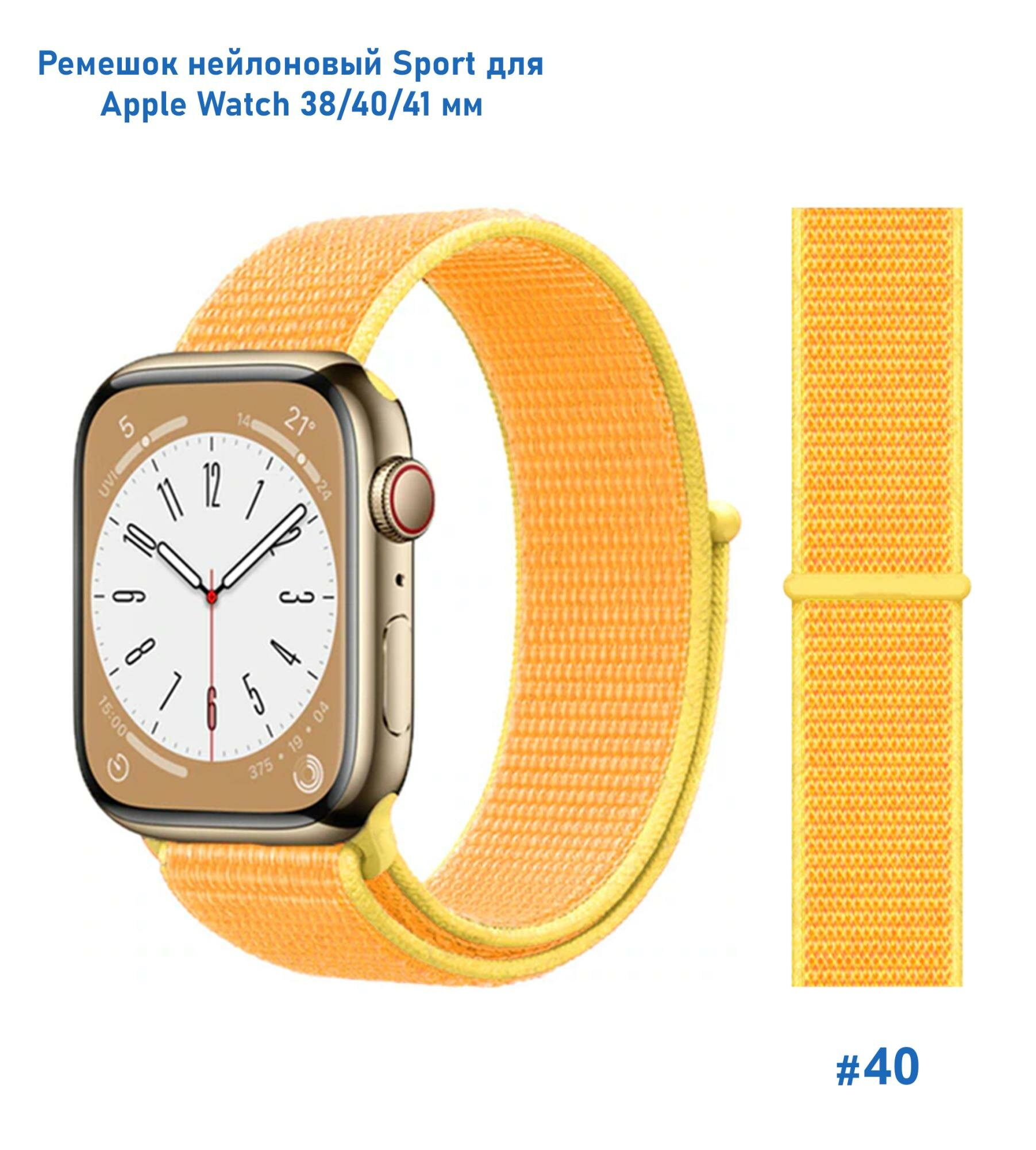 Ремешок нейлоновый Sport для Apple Watch 38/40/41 мм, на липучке, желтый (40) информация:
