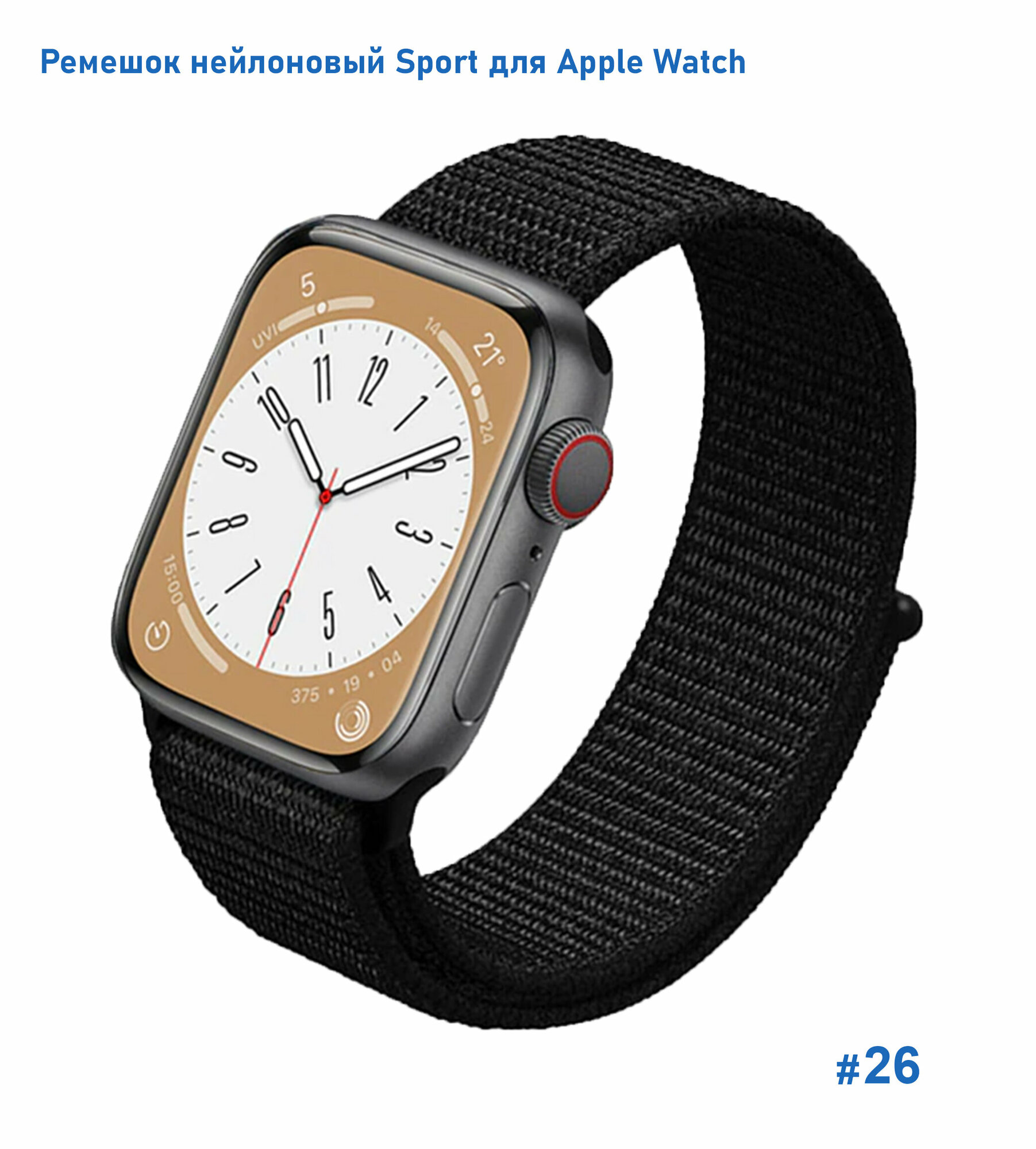 Отзывы на Ремешок нейлоновый Sport для Apple Watch 38/40/41 мм, на липучке, черный угольный (26)
