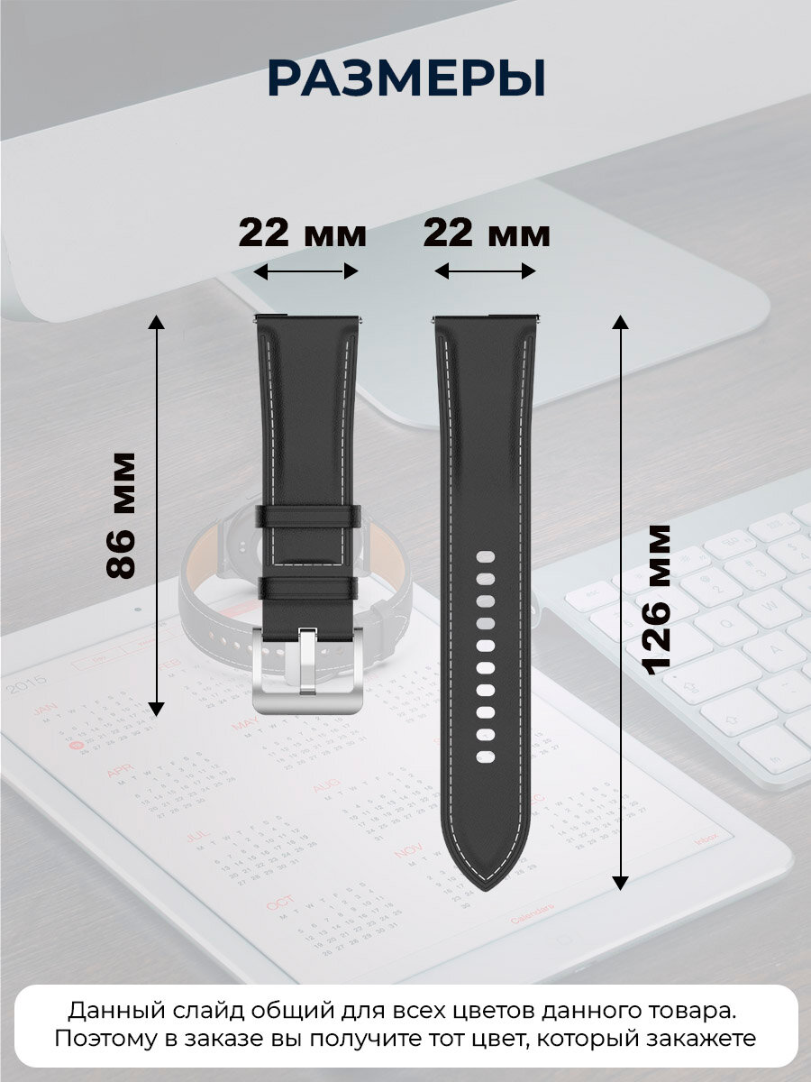 Универсальный кожаный ремешок для Xiaomi, Amazfit, Honor, Garmin, Huawei, 22 мм, черный 1 198 ₽