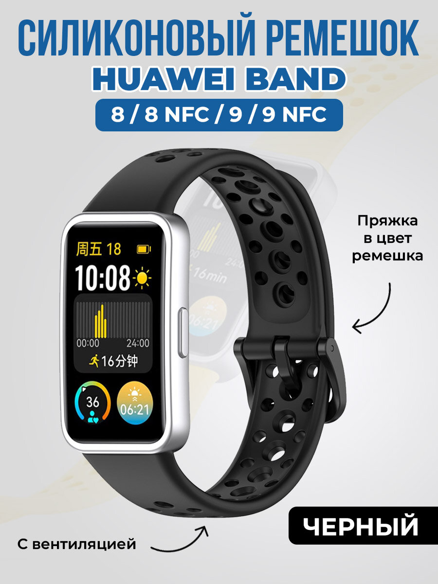 Силиконовый ремешок с вентиляцией для Huawei Band 8/9, черный информация: