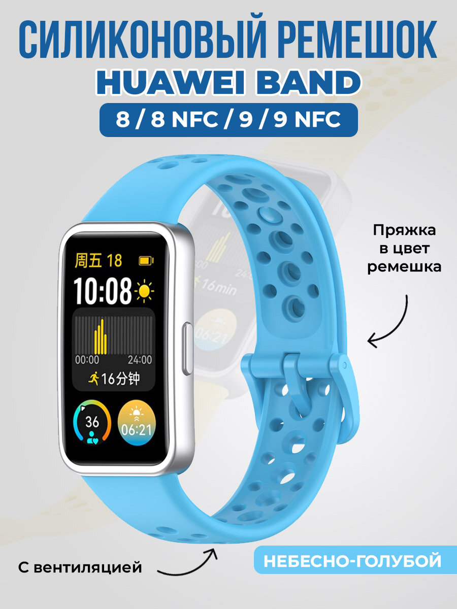 Силиконовый ремешок с вентиляцией для Huawei Band 8/9, небесно-голубой информация: