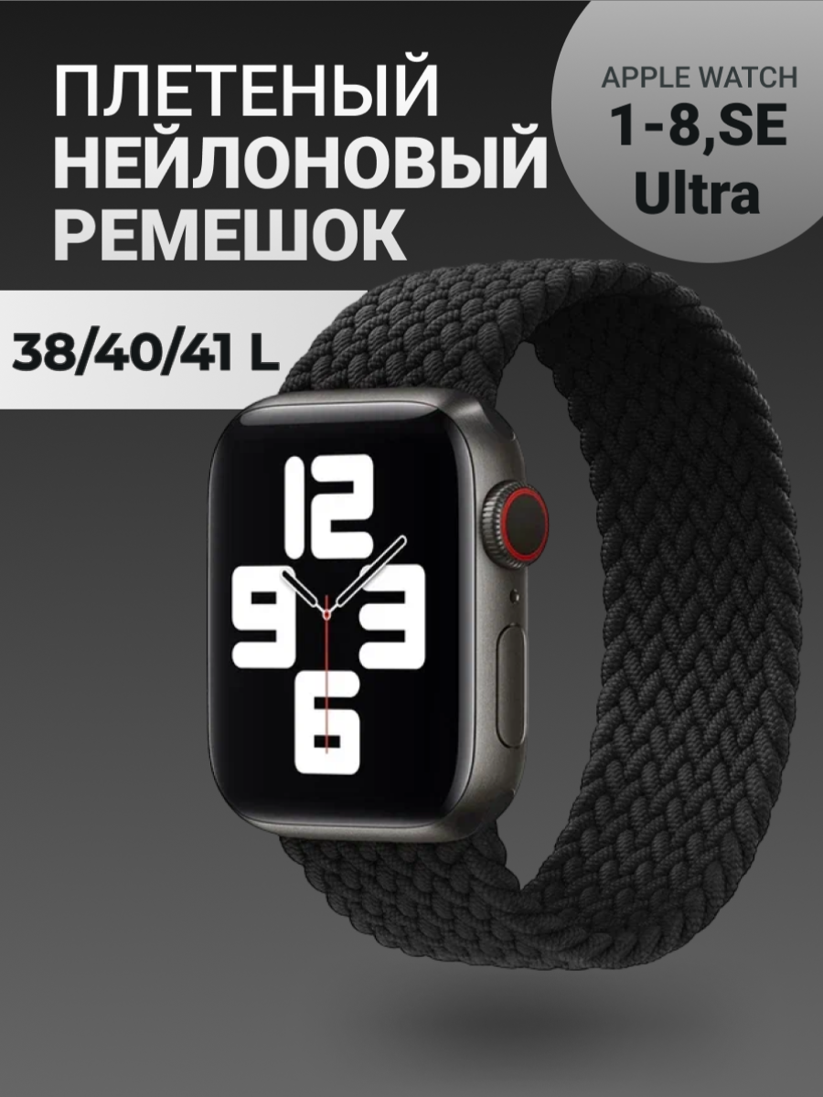 Отзывы на Нейлоновый ремешок для Apple Watch Series 1-9, SE, SE 2 и Ultra, Ultra 2; смарт часов 38 mm / 40 mm / 41 mm; размер L (155 mm); черный