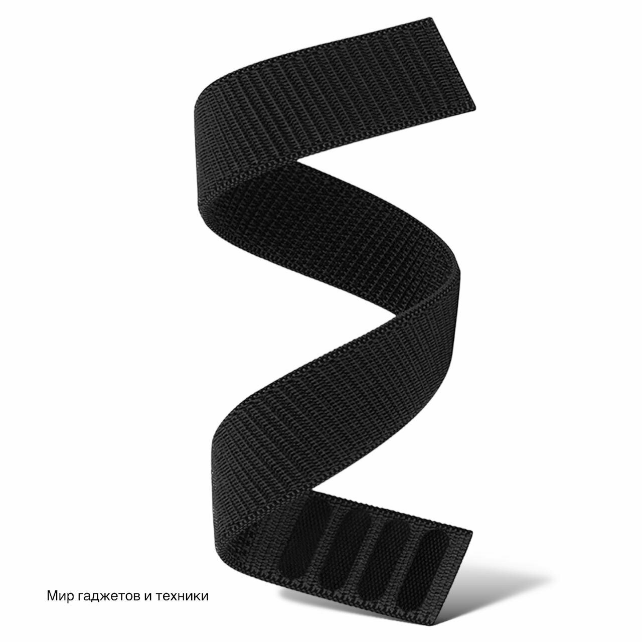 Универсальный нейлоновый Nylon ремешок 20 мм для часов Samsung Galaxy Watch, Huawei Watch, Honor, Xiaomi Amazfit и Garmin, черный информация: